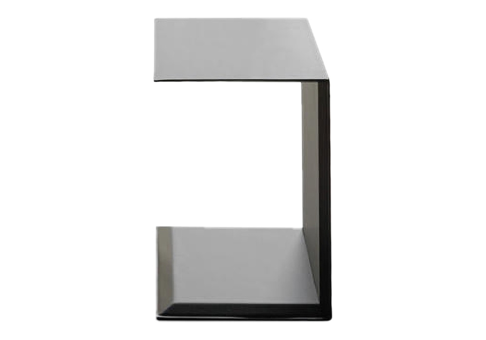 Ludwig diseñada por Roberto Gobbo para Désirée es una mesa auxiliar con estructura en aluminio acanalado pintado bronce mate y tapa en MDF revestido en corazón flor corregida.