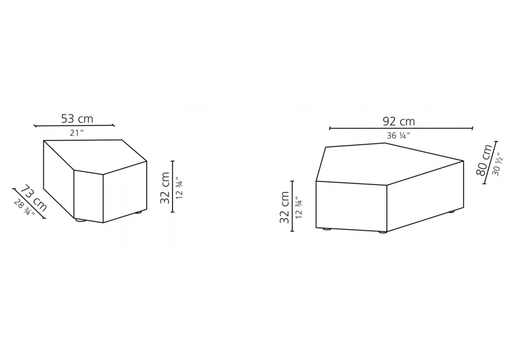 | Dimensiones | 92 x 80 x H 32 cm, 53 x 73 x H 32 cm. |