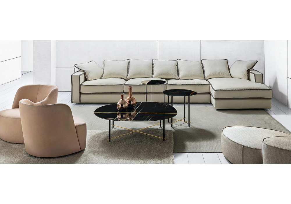 Shanghai diseñada por Castello Lagravinese para Casamilano es una mesita con tablero en mármol y base en metal pintado negro mate y latón cepillado.