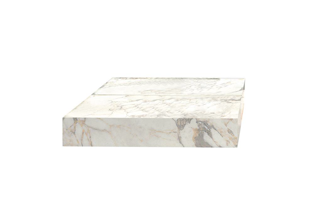 Ishi diseñada por CSM para Casamilano es una mesita con ruedas revestida en mármol, con estructura compuesta por paneles de aglomerado.