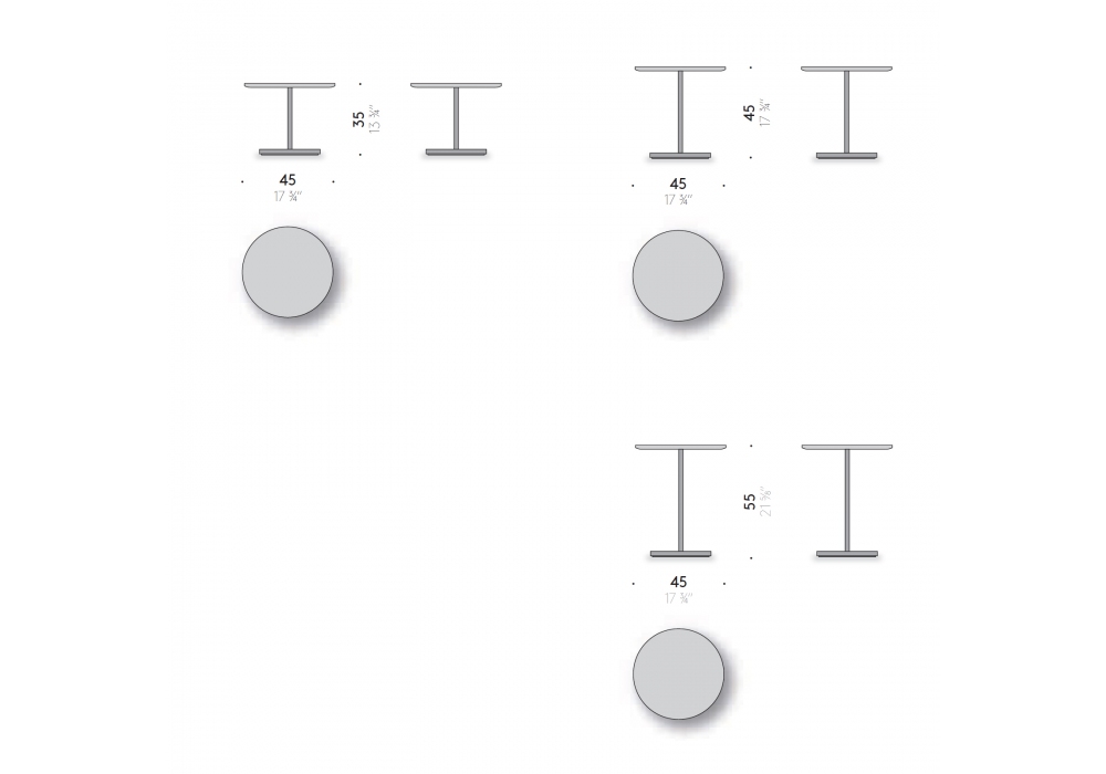 | Dimensiones | Ø 45 x H 35 cm; Ø 45 x H 45 cm; Ø 45 x H 55 cm. |