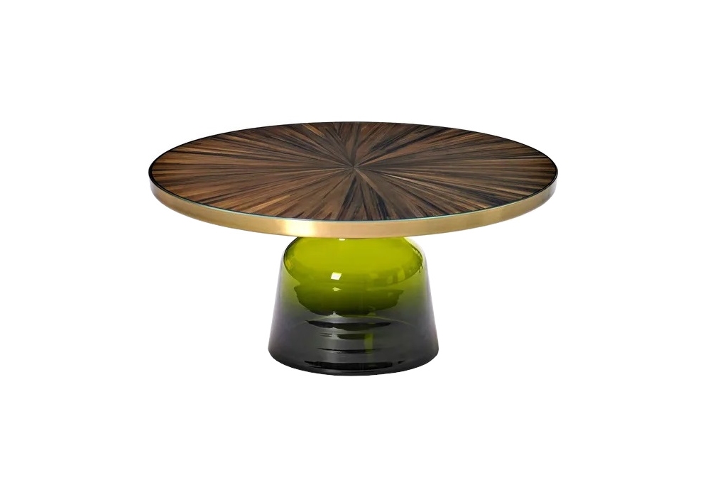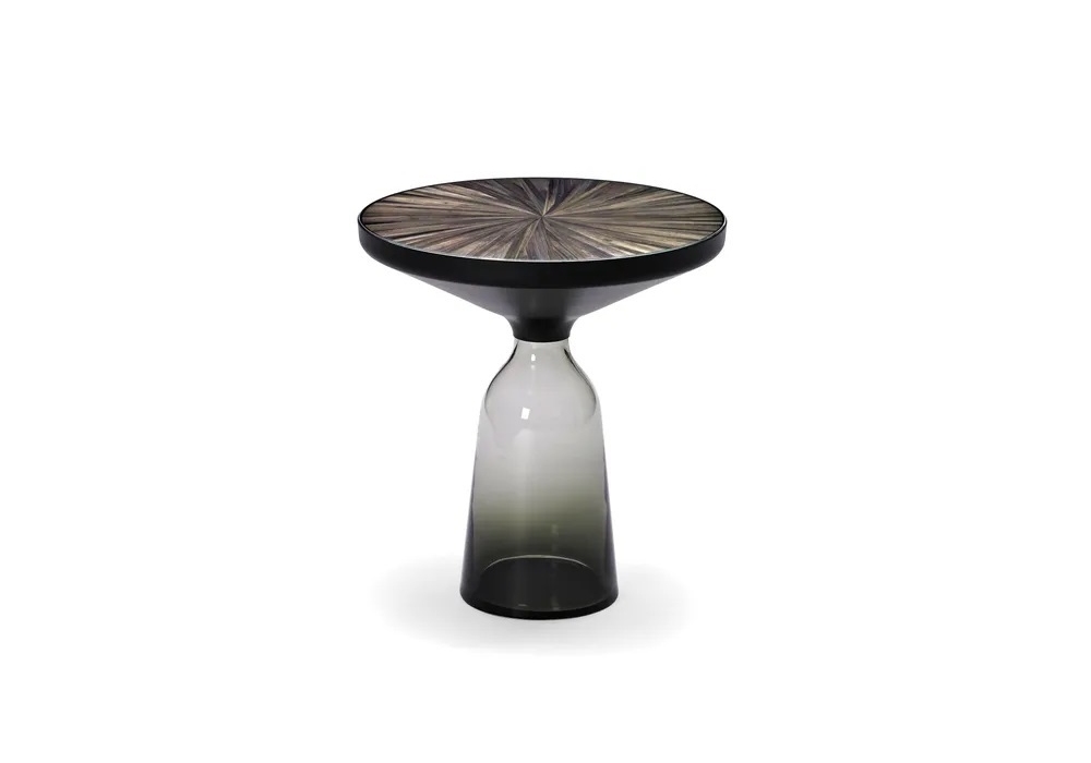 Bell Straw Marquetry diseñada por Sebastian Herkner para ClassiCon es una mesita caracterizada por una base de vidrio y un tablero con incrustaciones. Disponible en diferentes acabados y tamaños.