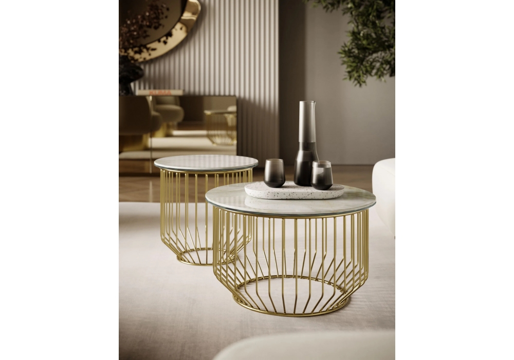 Circus diseñada para Bontempi es una mesita con estructura de acero lacado y tapa de SuperMarble. Disponible en diferentes acabados y tamaños.