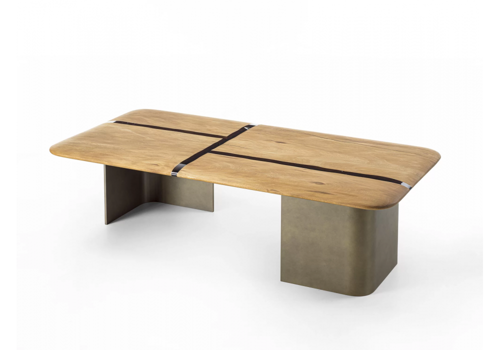 Kauri Delta diseñada por Authentic Design para Riva 1920 es una mesita realizada con tapa de madera Kauri con inserciones de resina y base de hierro. Disponible en diferentes acabados y dimensiones.