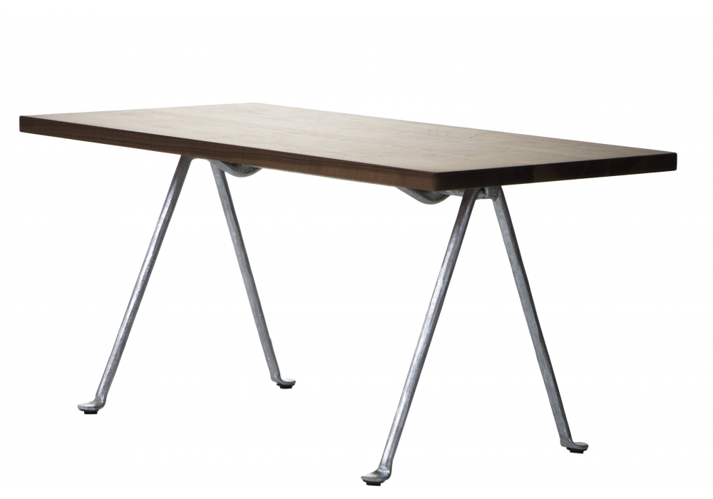 Officina diseñada por Ronan & Erwan Bouroullec para Magis es una mesa baja con estructura de hierro forjado, galvanizado en caliente o tratado por cataforesis y pintado en poliéster. Tablero en mármol blanco de Carrara o nogal americano macizo.