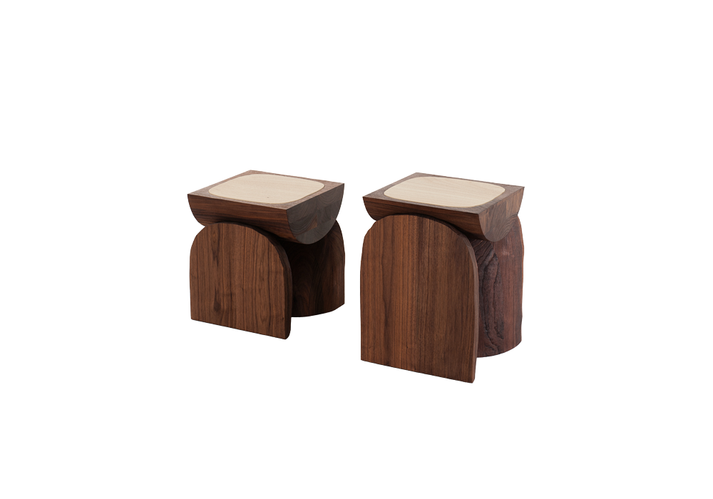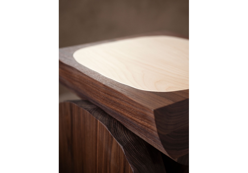 Bread diseñada por Faye Toogood para Tacchini es una mesa auxiliar de madera de fresno teñida en nogal con un inserto de tablero de arce. Disponible en diferentes dimensiones.