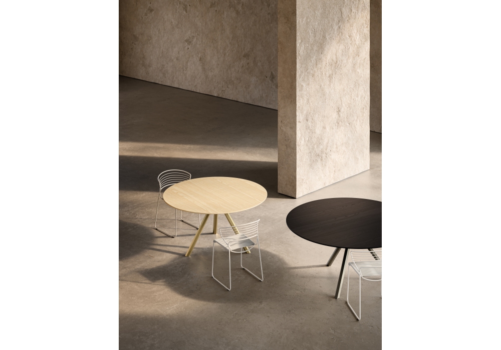 Heb, diseñada por Francesco Rota para Desalto, es una mesita con base y tablero de metal pintado en diferentes acabados. Disponible en diferentes acabados y dimensiones
