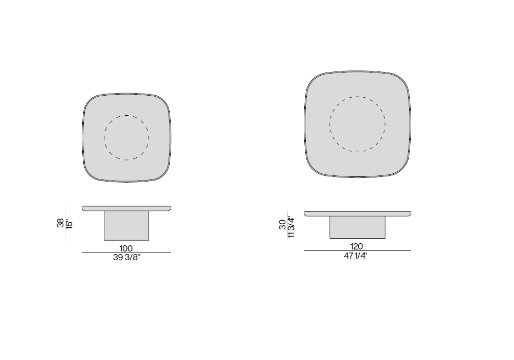 | Dimensiones | 100 x 100 x H 38 cm; 120 x 120 x H 30 cm. |