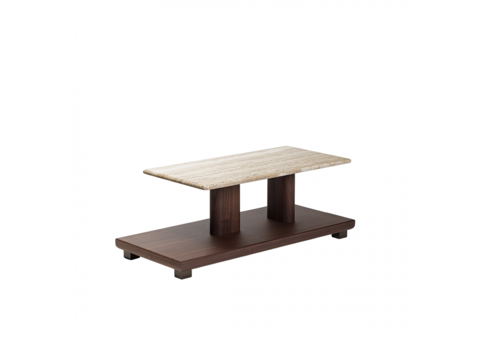 Kirk diseñada por Carlo Ballabio para Porada es una mesita con base de nogal canaletta macizo y patas de metal bronce dorado. Las patas son de nogal canaletta macizo y la superficie está disponible en nogal canaletta macizo o mármol.