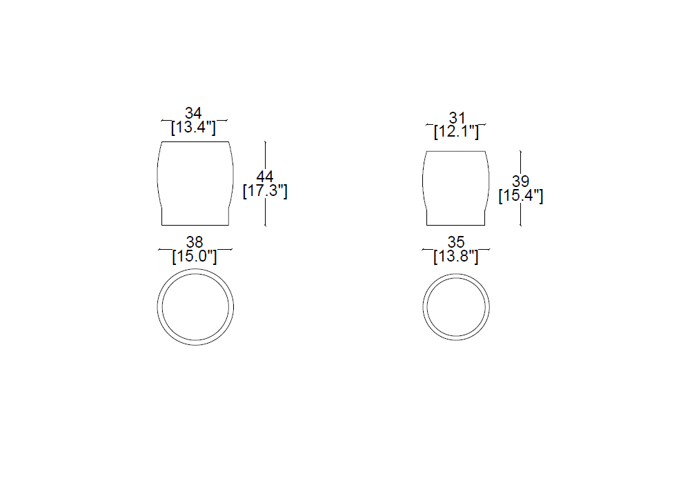 | Dimensiones | Ø 38 x H 44 cm; Ø 35 x H 39 cm. |