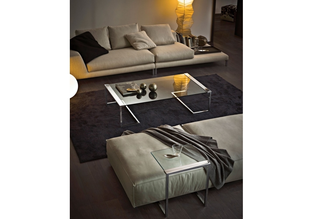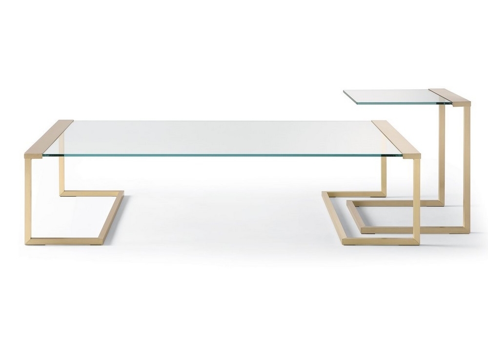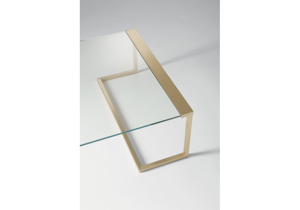 Sir T32 diseñada por Pierangelo Gallotti para Gallotti&Radice es una mesa de centro con 10mm transparente o ahumado "grigio Italia" tapa de cristal templada. Piezas de metal cromadas. Piezas metálicas de latón brillante o satinado, bajo petición.