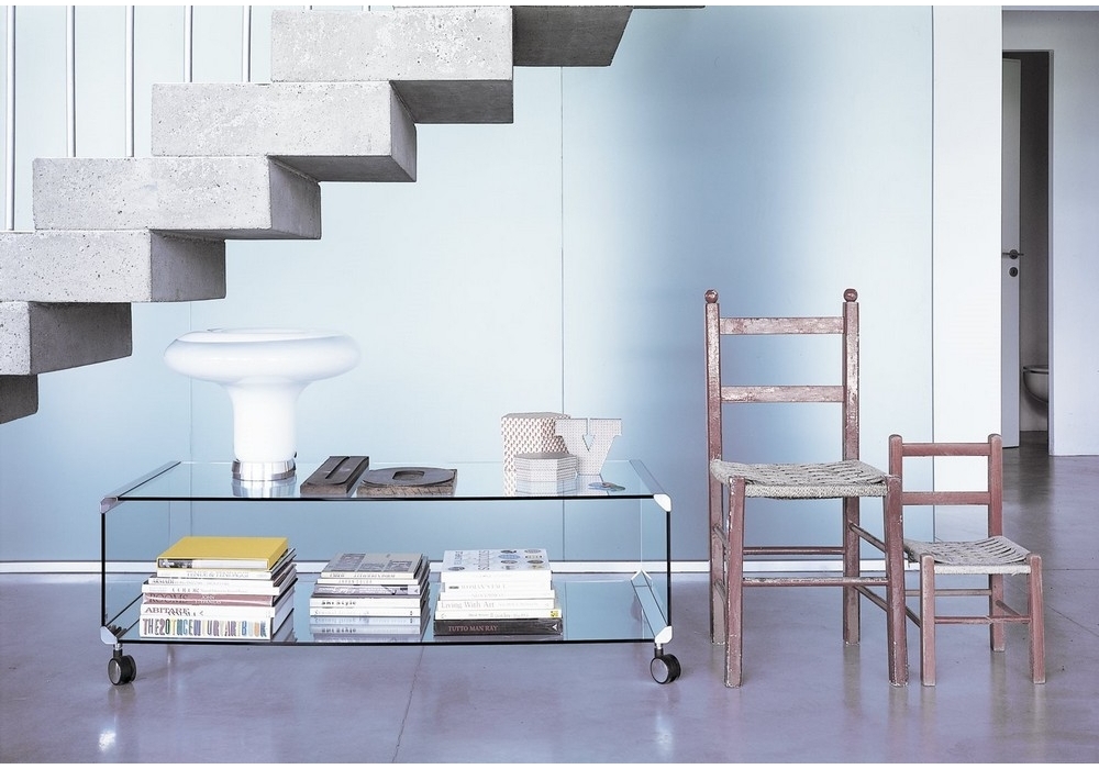 George 2 diseñada por Pierangelo Gallotti para Gallotti&Radice es una mesita con ruedas de vidrio templado grigio Italia transparente o ahumado de 8 mm. Piezas metálicas de acero inox brillante. Piezas metálicas de acero inoxidable satinado, brillante, satinado o gofrado lacado blanco o negro bajo pedido. Versión disponible sin ruedas (altura total: 34cm).