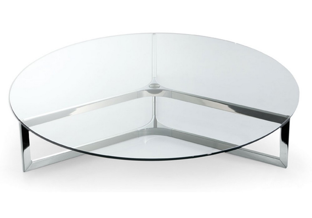 Raj 1 diseñada por Ricardo Bello Dias para Gallotti&Radice es una mesa de centro con superficie de vidrio templado transparente de 12mm. Base de acero inox brillante (40x20x2mm). Parte central de acero inox cromado. También disponible con superficie de vidrio templado ahumado “grigio Italia” y estructura de metal bruñido.