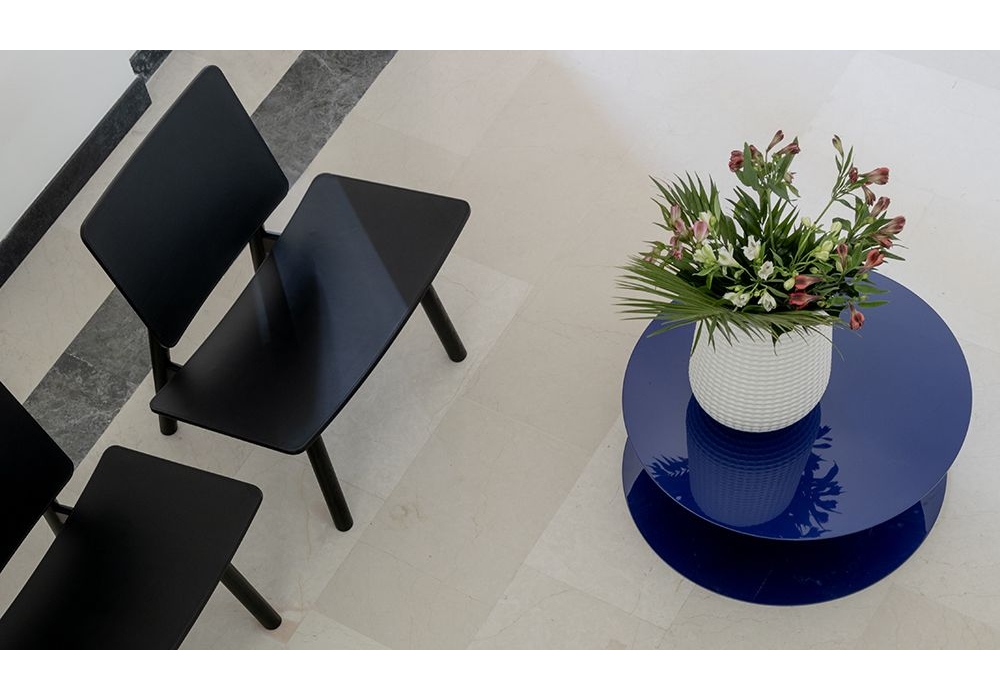 Gong Lux diseñada por Giulio Cappellini para Cappellini es una mesita extraíble fabricada con láminas de metal cortadas con láser. Disponible en diferentes acabados y dimensiones.
