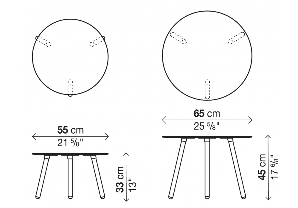 | Dimensiones | Ø 55 x H 33 cm; Ø 65 x H 45 cm. |