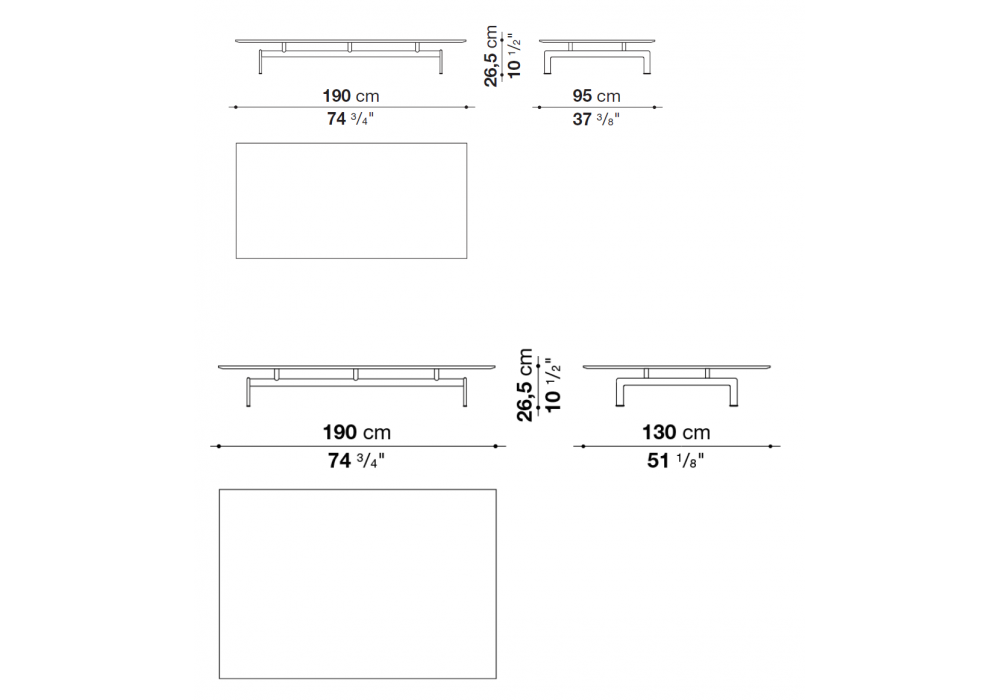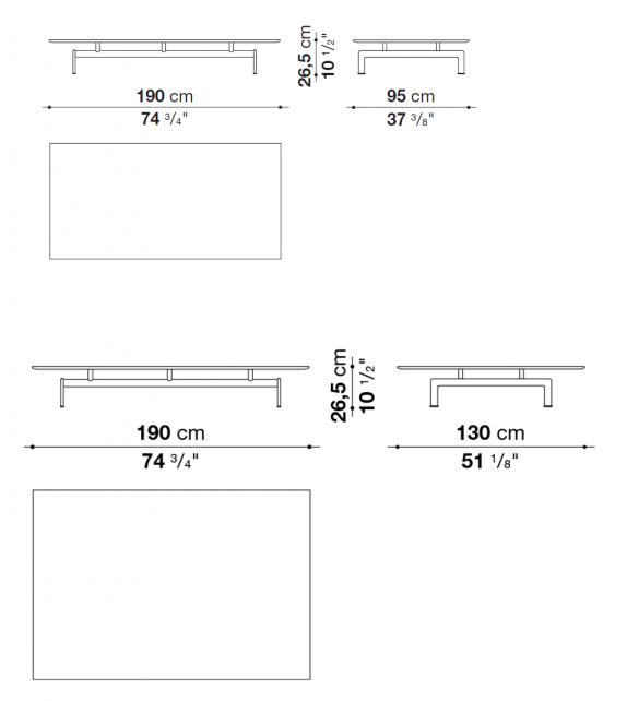 | Dimensiones | 190 x 95 x H 26.5 cm; 190 x 130 x H 26.5 cm. |