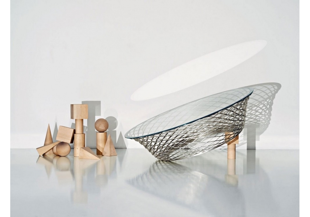 Teso diseñada por Foster + Partners para Molteni&C es una mesita con tapa de cristal extraclaro y estructura metálica. La estructura portante se obtiene cortando y planchando una sola hoja de acero en un molde.