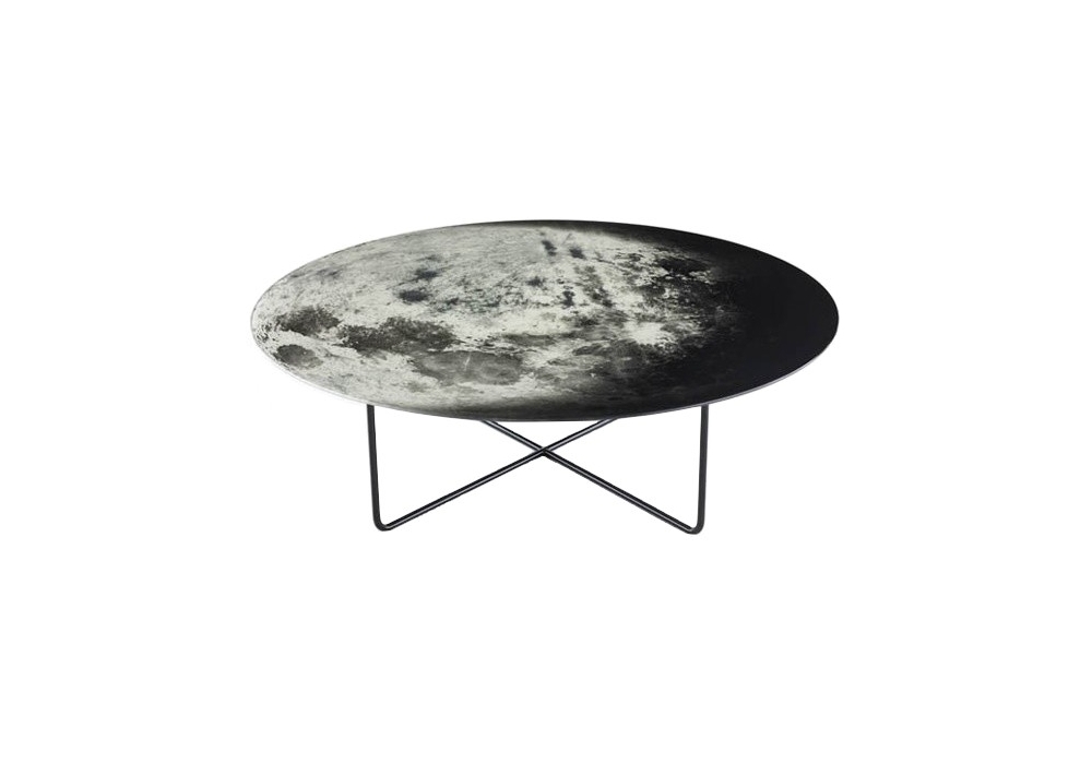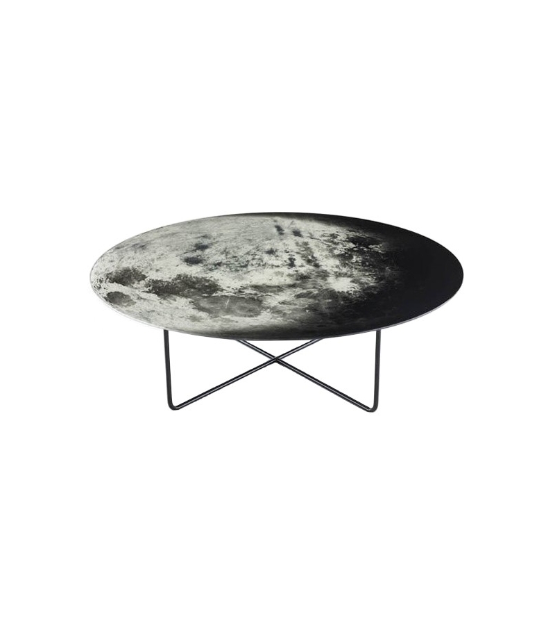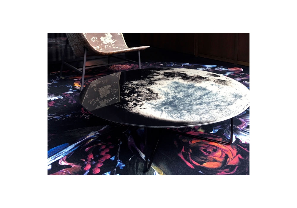 My Moon My Mirror is the low table designed by Diesel with Moroso. Hanging on the wall or in the centre of the room, My Moon My Mirror is your personal piece of the night sky. The moon printed on the mirrored surface combines function and fantasy. Let yourself go and howl at the moon. Glass mirror with safety film, silvery and printed with photographic print.