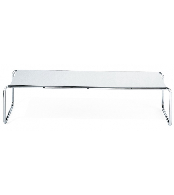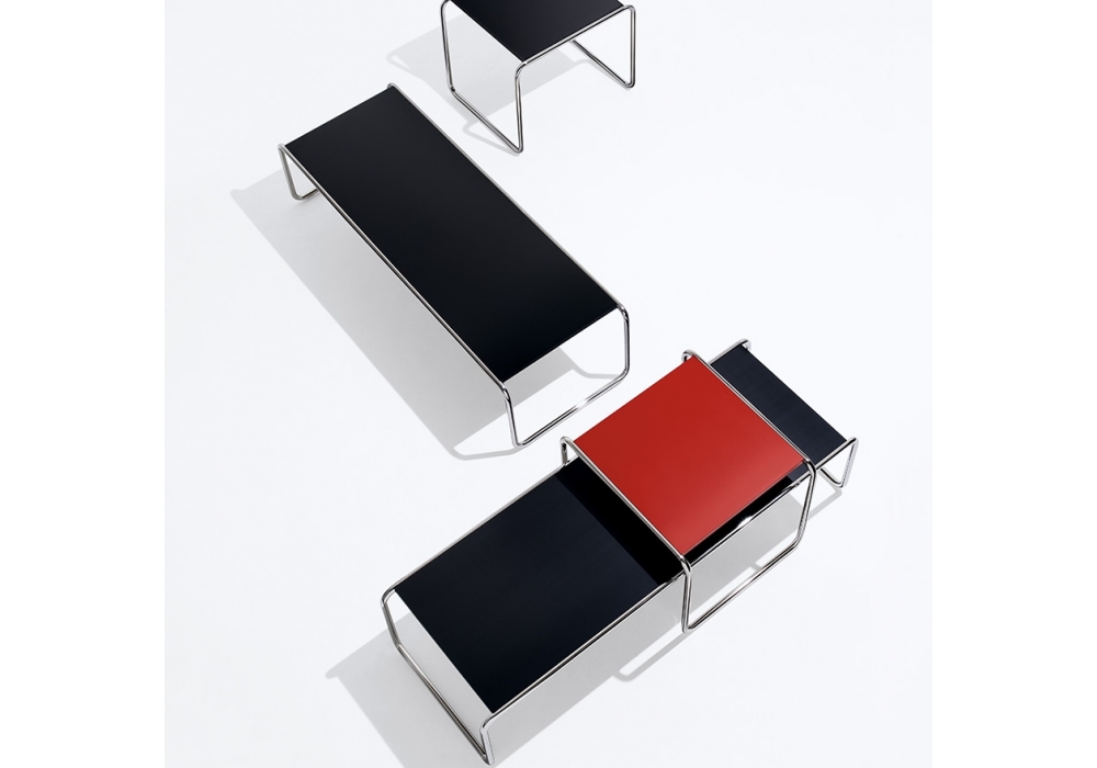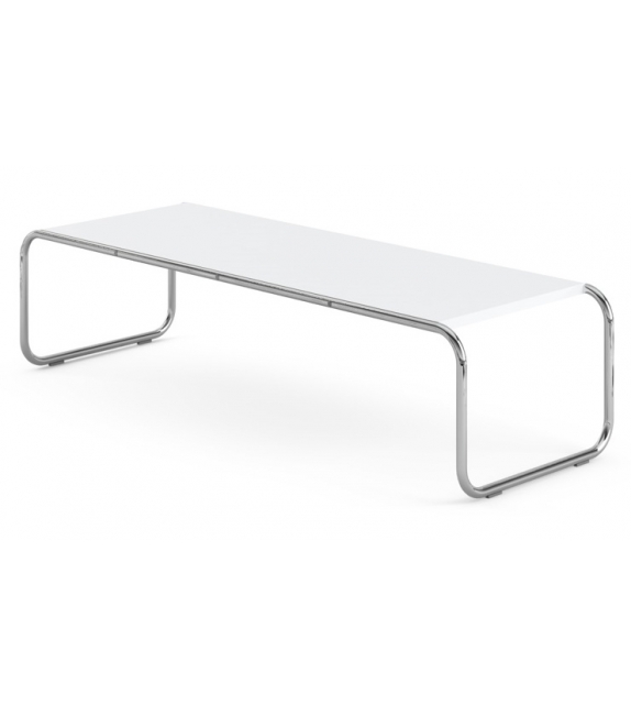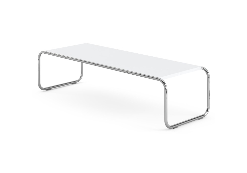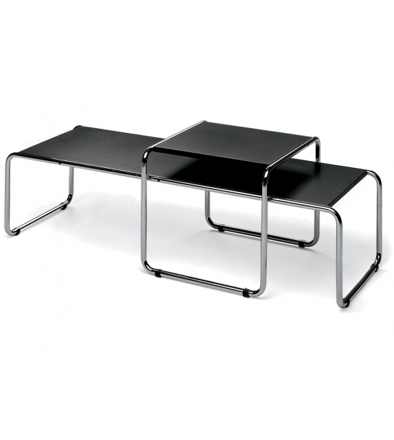 Laccio diseñada por Marcel Breuer para Knoll es una mesita baja con estructura de tubo de acero cromado o con pintura epoxi mate en varios colores. Tablero en laminado o mármol en diferentes acabados.
