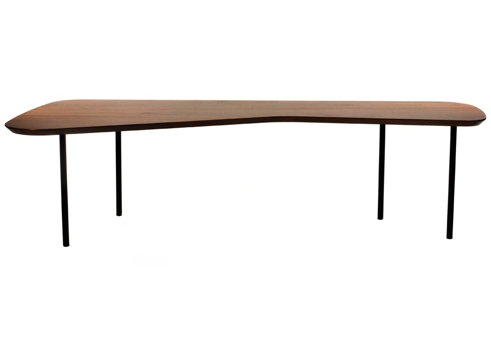 Alexander Girard diseñada por Alexander Girard para Knoll es una mesita con estructura de metal pintado de negro y tablero de roble o nogal, con borde biselado a 45°. Disponible en dos tamaños.