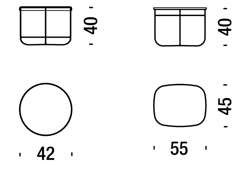| Dimensiones | Ø 42 x H 40 cm; 55 x 45 x H 40 cm. |