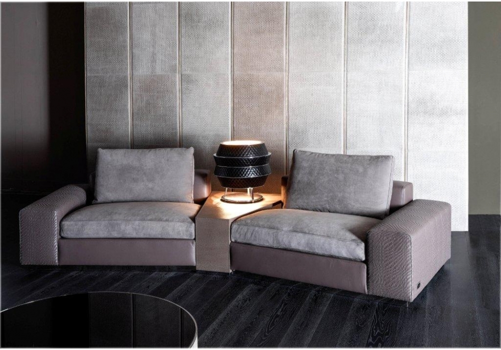 Join diseñada por Rugiano es una mesa de centro con tablero disponible en cuero, lacado brillante o pintado con decoración. Estructura en latón bronceado o cromado.