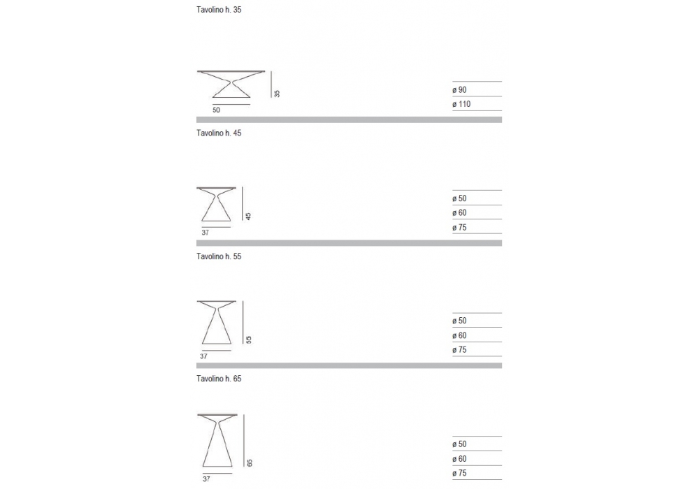 | Diámetro de la superficie | • 90 - 110 - 50 - 60 - 75 cm |