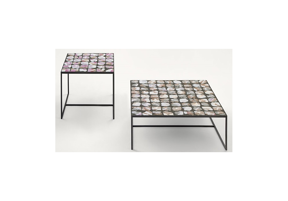 Sciara diseñada por Marella Ferrera para Paola Lenti es una hermosa mesita con estructura en acero inoxidable Délabré. El tablero, decorado a mano, se compone por azulejos de piedra de lava con decoración en vidrio, disponible en 7 diferentes. acabados. También disponible en 2 dimensiones. Este producto se puede también utilizaren ambientes interiores.