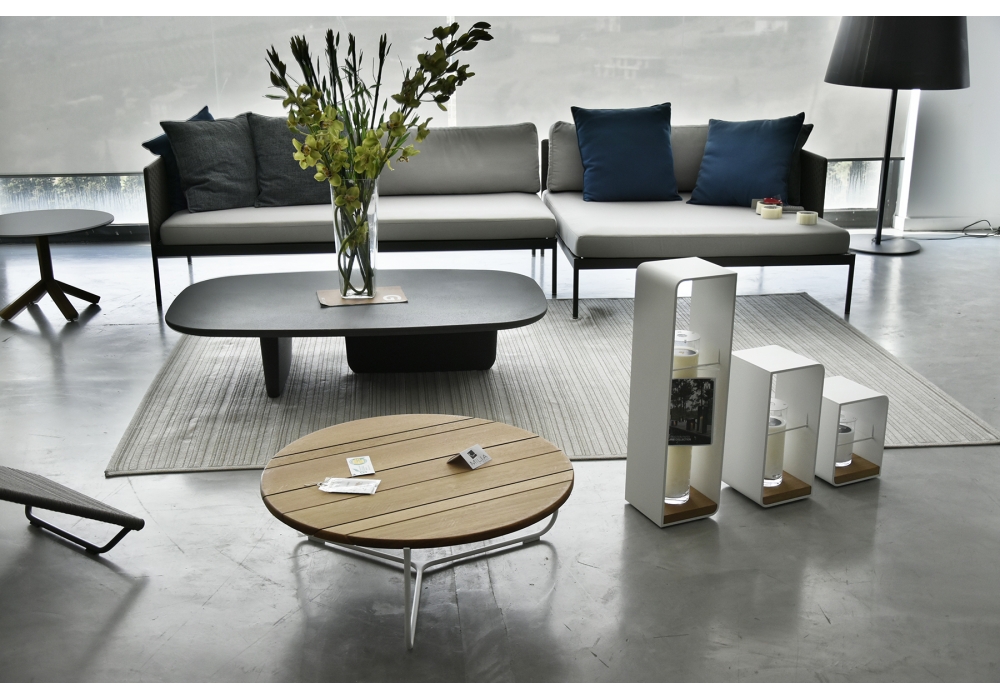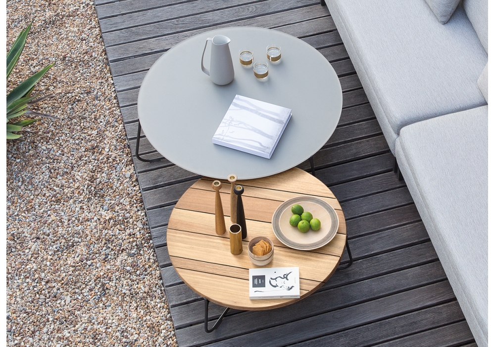 Mood diseñada por Gerd Couckhuyt para Manutti es una mesita con estructura en acero y tablero en diferentes acabados. Disponible en diferentes dimensiones.