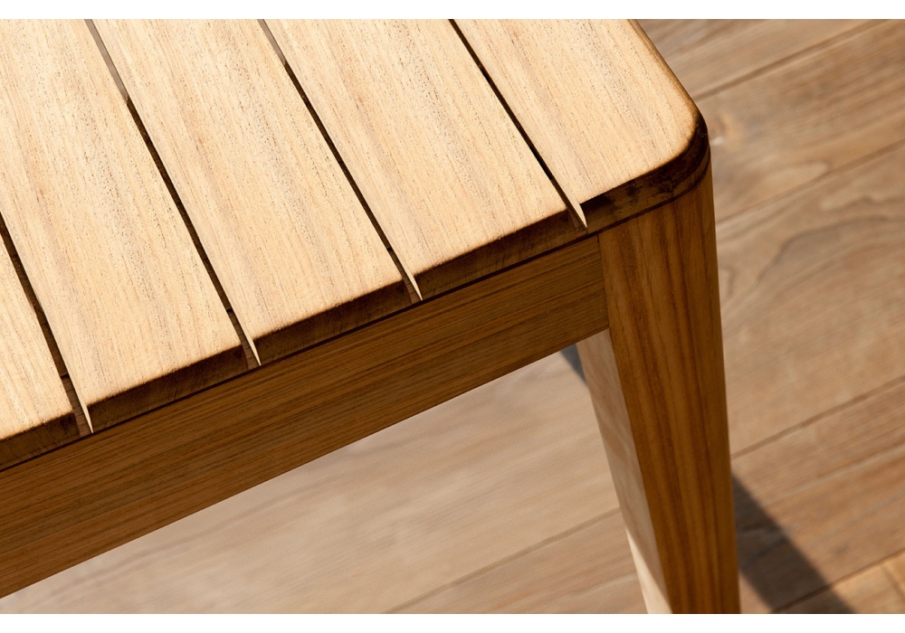 Mood diseñada por Studio Segers para Tribù es una mesita con estructura en teca, disponible en dos tamaños.