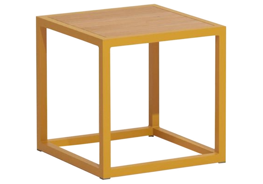 Landscape diseñada por Kettal Studio es una mesa de centro de forma cuadrada con marco de aluminio pintado y tablero de madera de teca.