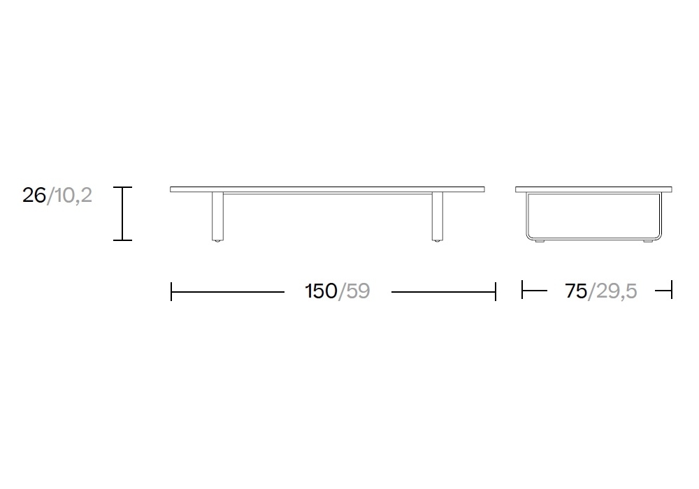 Bitta diseñada por Rodolfo Dordoni para Kettal es una mesa de centro con estructura portante de aluminio pintado y tablero cuadrangular de aluminio, madera de teca, travertino o mármol. Bitta está disponible en diferentes acabados.
