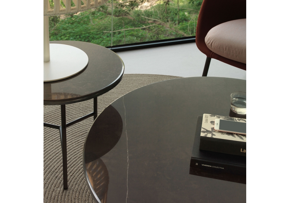 Grada Outdoor diseñada por Lievore Altherr Molina para Expormim es una mesita adapta para uso en exteriores con estructura en tubo de acero inoxidable y tablero en en Trespa® HPL 13 mm / 0.51 ", Dekton® o Kerlite®. Disponible en diferentes dimensiones.