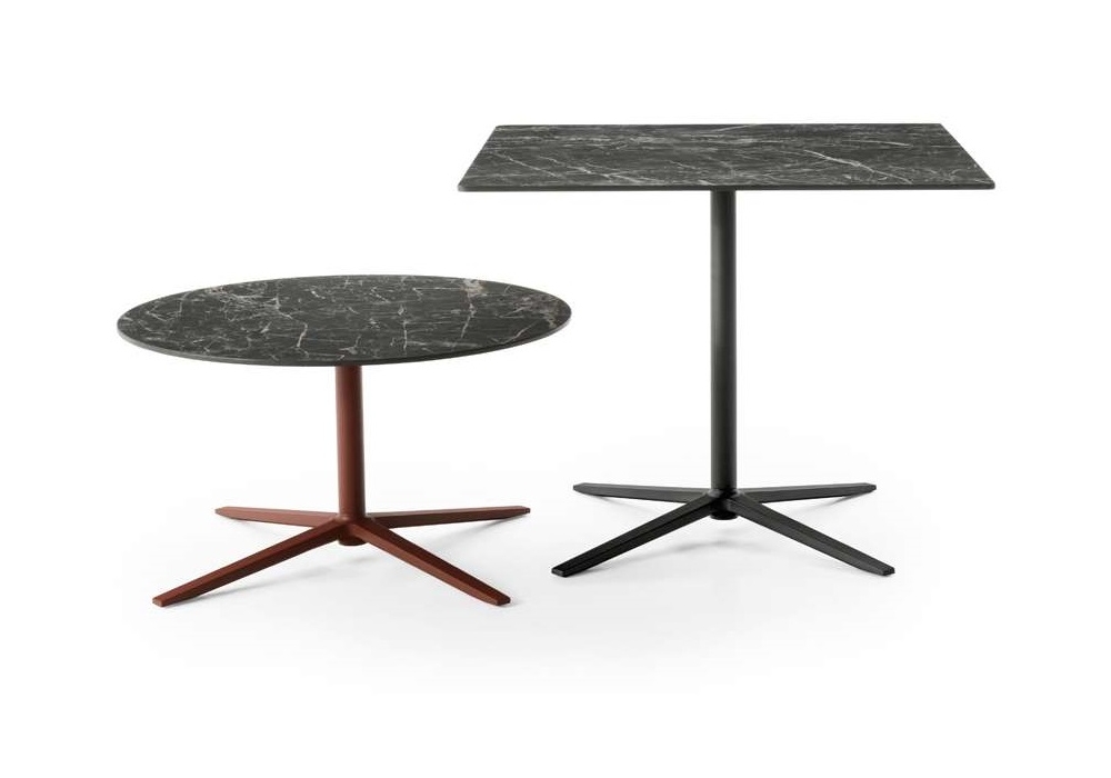 Cosmos diseñada por Jeffrey Bernett para B&B Italia Outdoor es una mesita con estructura de aluminio pintado y tablero de gres porcelánico en varios acabados y dimensiones.