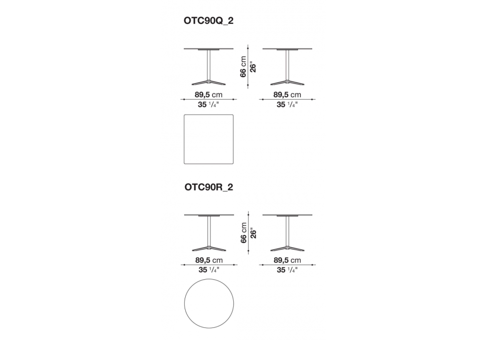 | Dimensiones | 89.5 x 89.5 x H 56 cm; Ø 89.5 x H 66 cm. |