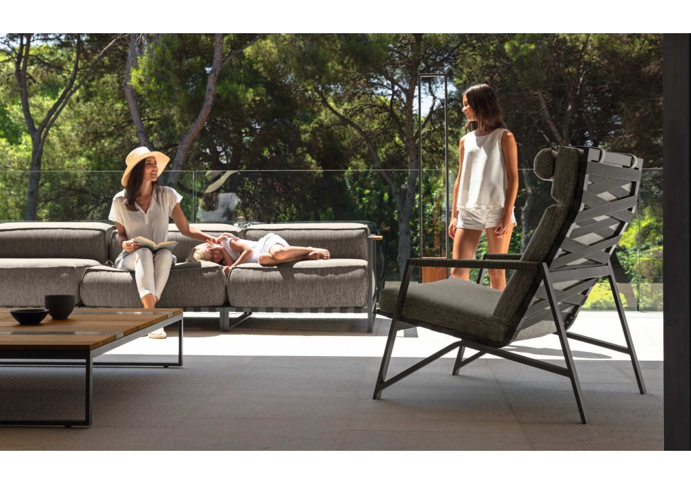 Casilda es una mesita diseñada por Ràmon Esteve para Talenti. Estructura de acero inoxidable con recubrimiento en polvo y tapa de madera de iroko. Mesa exterior resistente a la interperie y con tiras de piedra de travertino, disponible en diferentes colores.