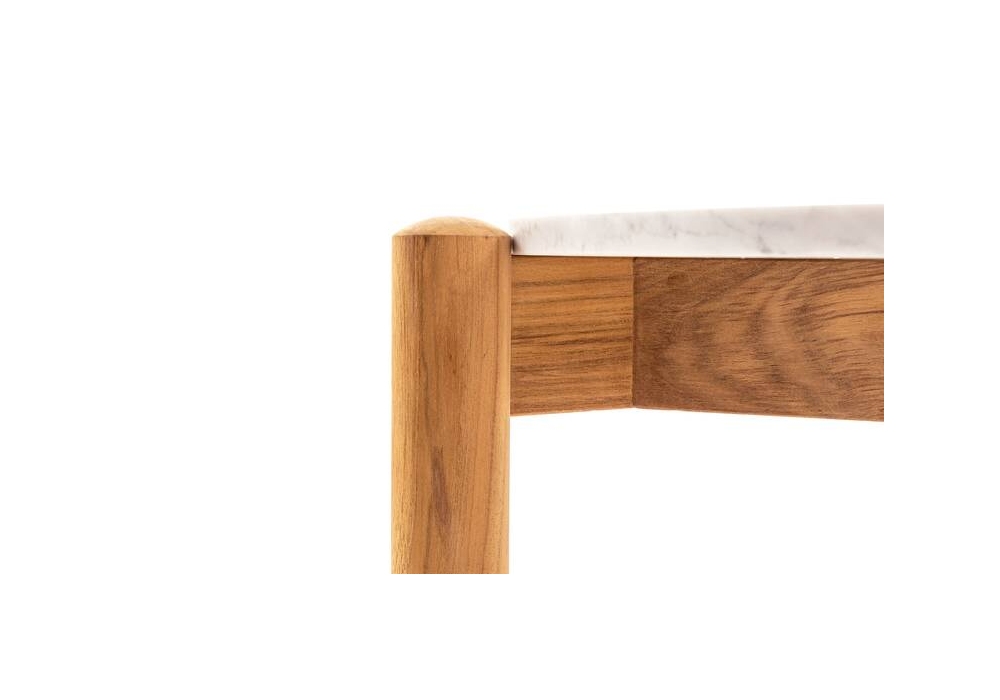 Table à Plateau Interchangeable diseñada por Charlotte Perriand para Cassina es una mesita con estructura de la base compuesta por tres patas de sección circular en madera de teca, unidas por tres travesaños en los que la superficie en mármol de Carrara. Disponible en 2 medidas.
