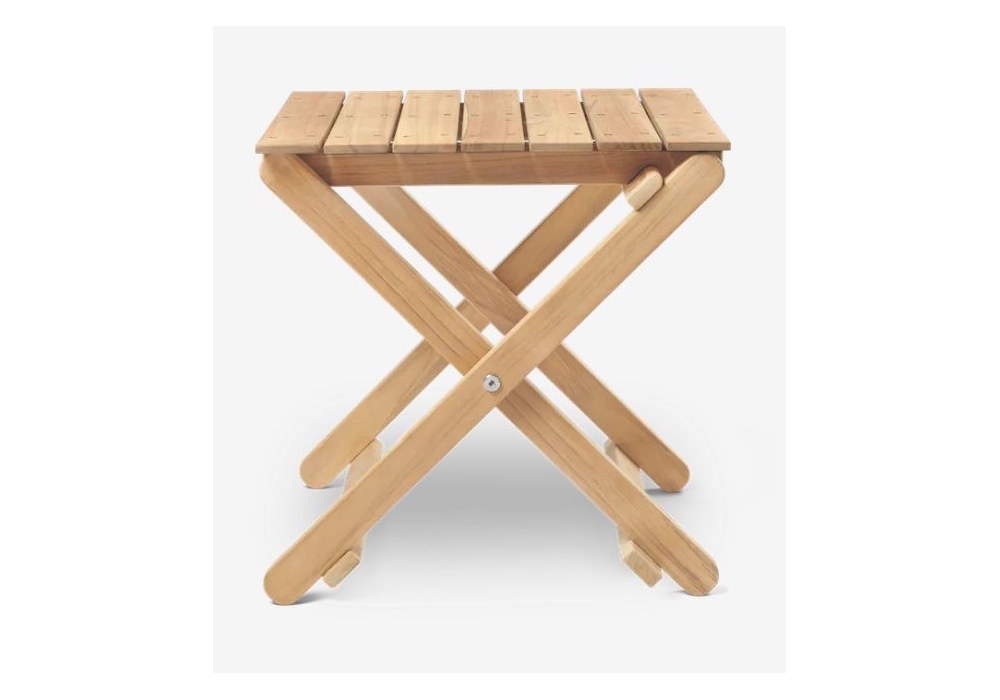 BM5568 diseñada por Børge Mogensen para Carl Hansen & Søn es una mesa auxiliar plegable para exterior con estructura de madera de teca maciza sin tratar.