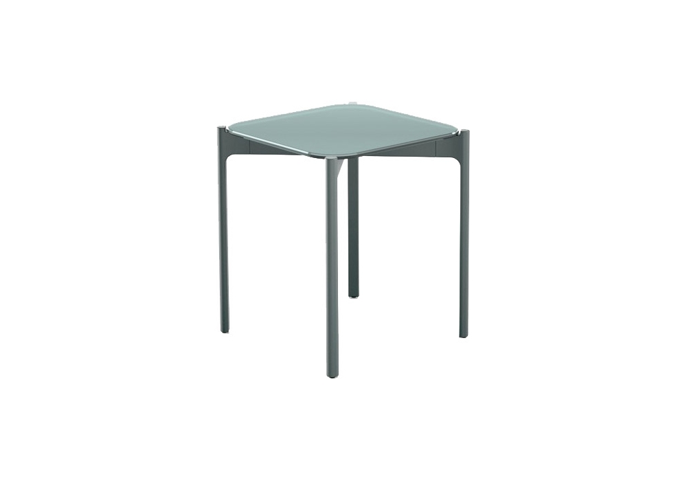Izon, diseñado por Arik Levy para Dedon, es una mesa auxiliar de aluminio con recubrimiento en polvo y está disponible en varias dimensiones y acabados.