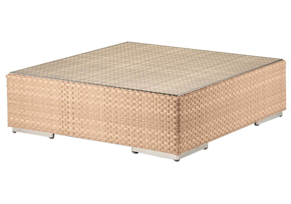 Lounge diseñado por Frank Ligthart para Dedon es una mesa de café en aluminio y estructura de fibra y parte superior de vidrio, que forma parte de la colección Lounge.