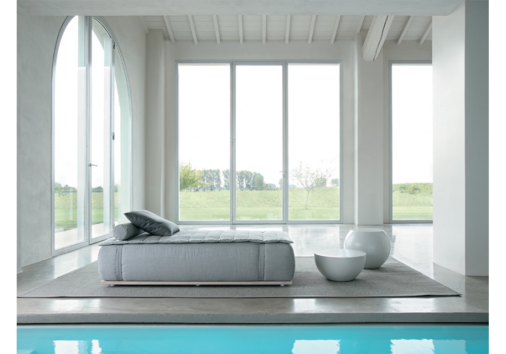 Bongo Open Air diseñado por Andrea Parisio para Meridiani es una colección de mesas en poliuretano estructural rígido con acabado lacado mate, con cubierta protectora impermeable.