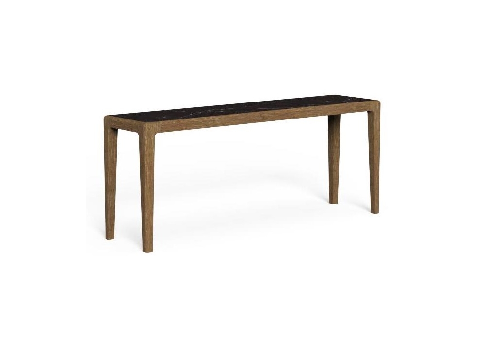 Cruise Teak diseñada por Ludovica y Roberto Palomba para Talenti es una consola con estructura de madera y tapa de gres, disponible en diferentes acabados.
