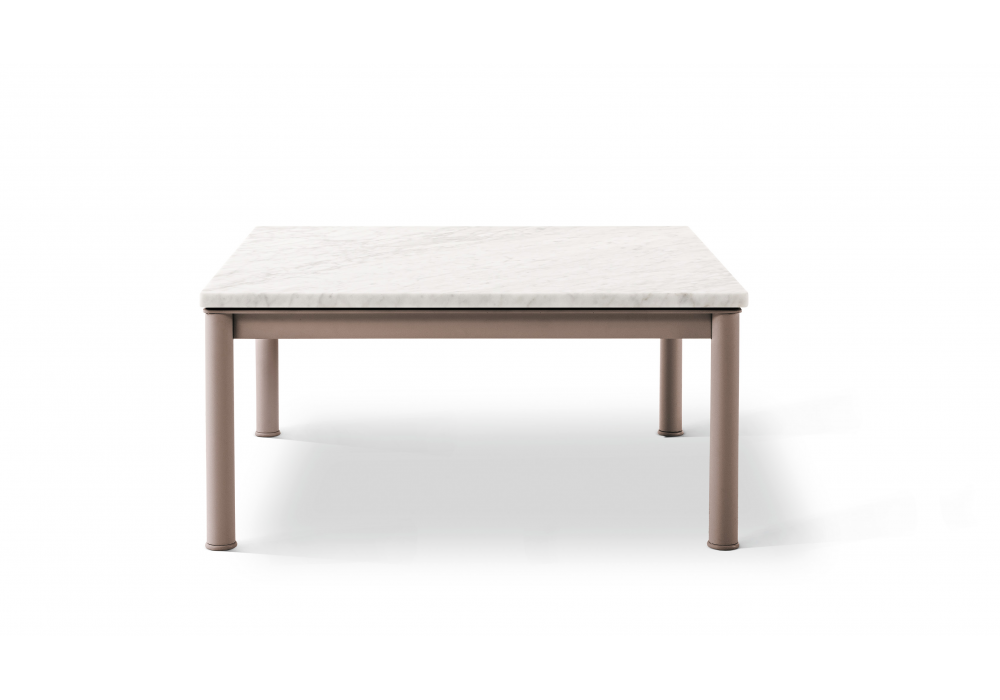 10 Table en Tube Basse, Grand Modèle, Outdoor diseñada por Le Corbusier, Pierre Jeanneret, Charlotte Perriand para Cassina es una mesita cuadrada realizada con tablero de mármol de Carrara y estructura pintada.