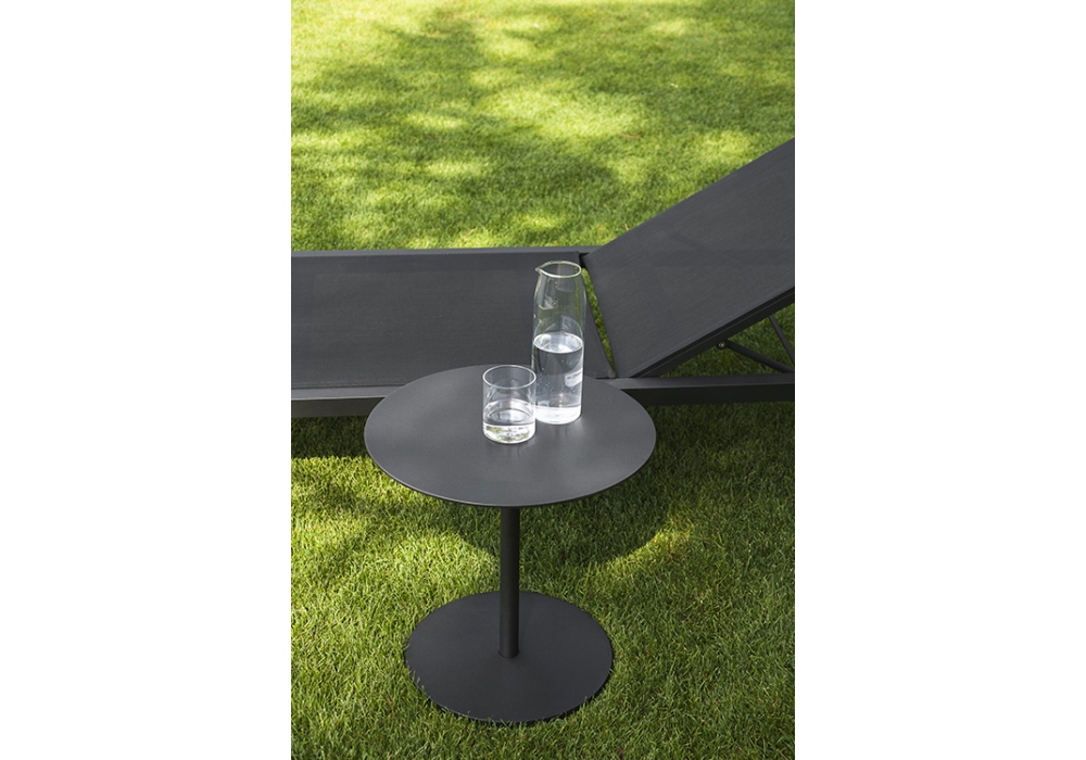 Button diseñada por Roda Studio es una mesa auxiliar de aluminio pintado en polvo disponible en diferentes acabados y medidas.