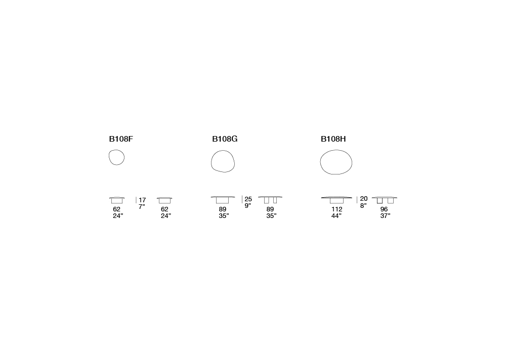 | Dimensiones | 45 x 45 x H 16 cm (B108A); 68 x 64 x H 16 cm (B108B); 80 x 69 x H 23 cm (B108C). |
