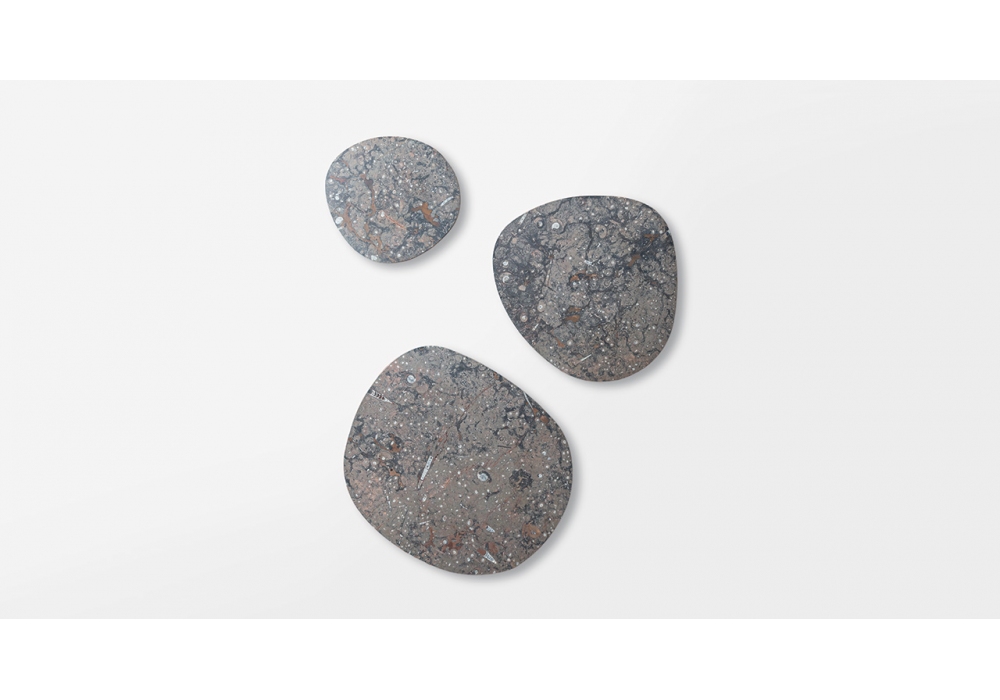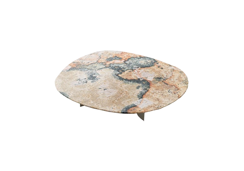Isole diseñada por Marella Ferrera para Paola Lenti es una mesita con base en acero pintado brillante en color a juego con la tapa, con espaciadores de plástico. La parte superior tiene forma irregular en mármol Caravaggio o Fossil Brown. Disponible en diferentes tamaños.