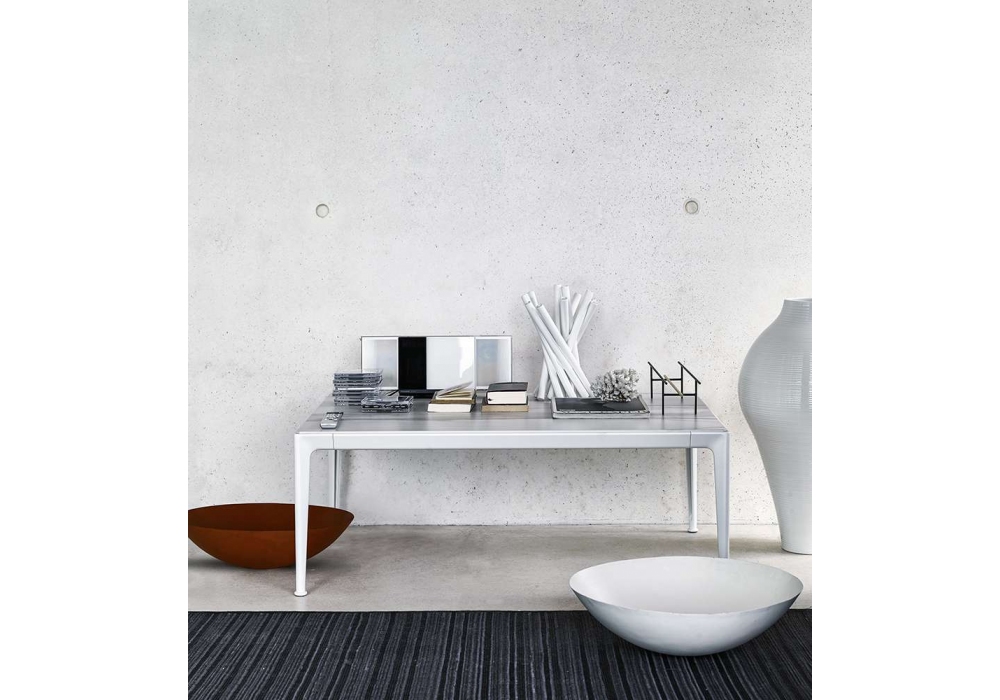 Mirto diseñada por Antonio Citterio para B&B Italia Outdoor es una mesita disponible en diferentes medidas. Realizada con estructura de aluminio pintado en diferentes acabados y tablero de gres porcelánico color blanco Calacatta.