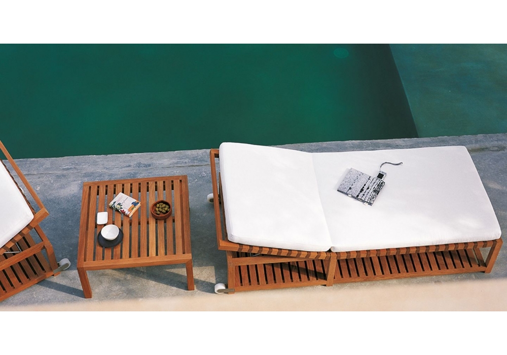 Network diseñada por Rodolfo Dordoni para Roda es una mesita de exterior fabricada en teca.