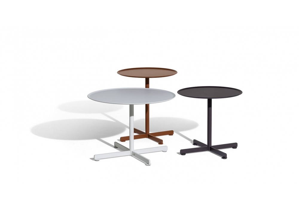 Bob Outdoor diseñada por Jean Marie Massaud para Poltrona Frau es una mesa de centro para exterior fabricada en acero inoxidable con acabado de pintura en polvo epoxi texturizada. Está disponible en tres tamaños y acabados.