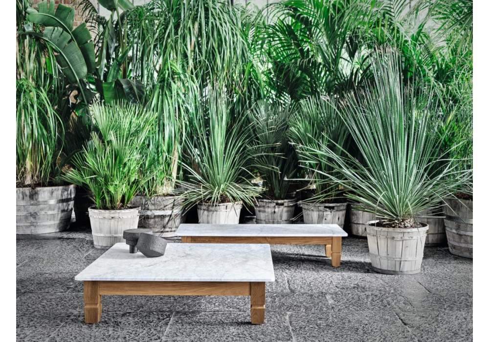 Jeko diseñada por Paola Navone para Gervasoni es una mesita realizada con estructura en ECOTeak y tapa en mármol blanco de Carrara. Disponible en 2 dimensiones.